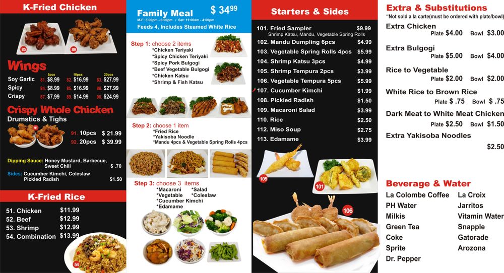 Welcome to atKBOP/Kogi Teriyaki, a delightful culinary gem located at 7801 Telegraph Rd Q, Montebello, CA. Specializing in Korean and Japanese fusion, their menu boasts an enticing array of dishes, from crispy chicken wings to satisfying rice bowls. The standout options include the flavorful Bulgogi Beef and the mouthwatering Spicy Tuna Roll.